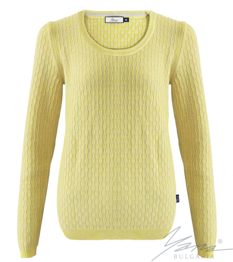 Памучните дамски пуловери на "ЯНА" АД с "О" деколте в структурна плетка от два цвята ванизе с дълъг ръкав изплетен на 14 файн са изключително удобни и комфортни при ползване, благодарение на използваните най-добри плетачни световни практики. Най-високи производствени стандарти за памучни тъкани. Най-екологична финишна обработка благодарение на швейцарската фирма THIES GmbH. Пуловера е със стилна регулар кройка, съобразена с последните модни тенденции, изплетен е фулифешън, без рязане. Най-актуалните цветове за сезона. Идеален както за офиса така и за свободното време.