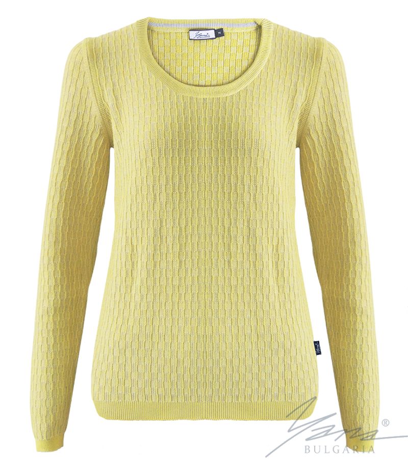 Памучните дамски пуловери на "ЯНА" АД с "О" деколте в структурна плетка от два цвята ванизе с дълъг ръкав изплетен на 14 файн са изключително удобни и комфортни при ползване, благодарение на използваните най-добри плетачни световни практики. Най-високи производствени стандарти за памучни тъкани. Най-екологична финишна обработка благодарение на швейцарската фирма THIES GmbH. Пуловера е със стилна регулар кройка, съобразена с последните модни тенденции, изплетен е фулифешън, без рязане. Най-актуалните цветове за сезона. Идеален както за офиса така и за свободното време.