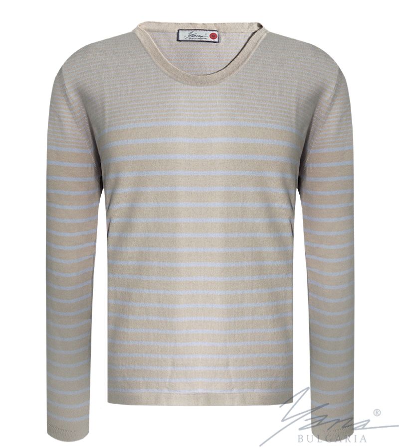 Мъжки двуцветен пуловер обло деколте светло сиво и бежово