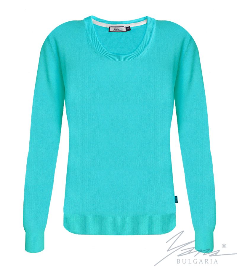 Дамски втален пуловер "О" деколте тюркоаз
