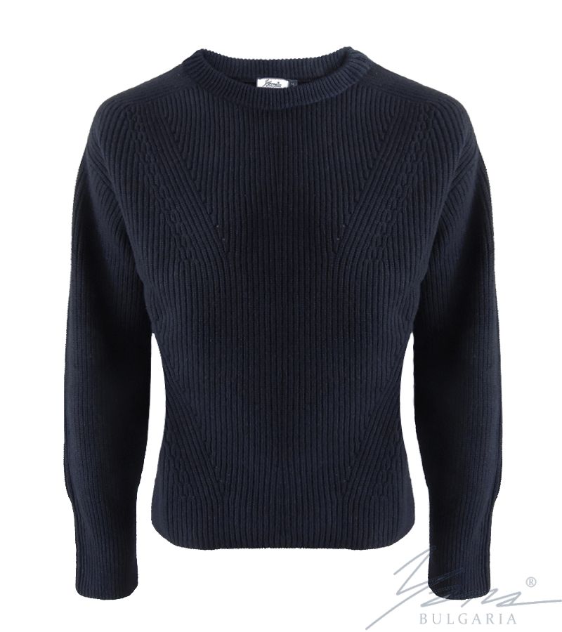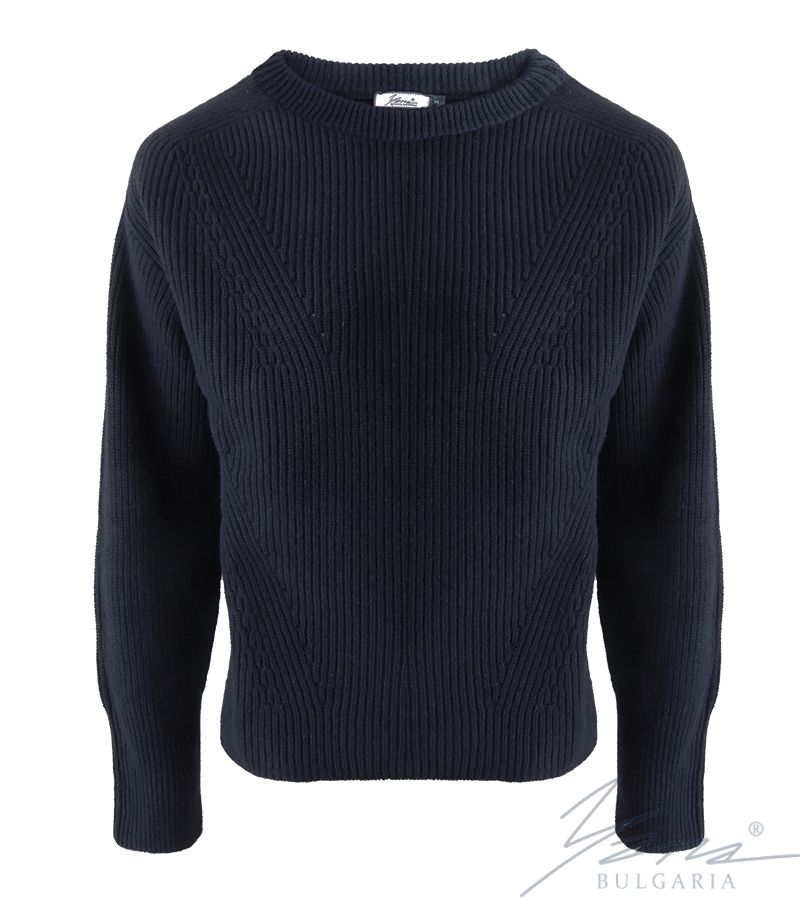 Дамски вълнен пуловер бие тъмно син