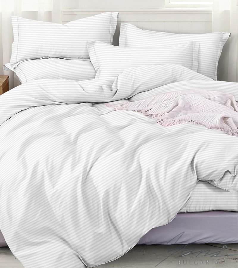 Начало СПАЛНО БЕЛЬО Луксозно спално бельо памук сатен бяло райе