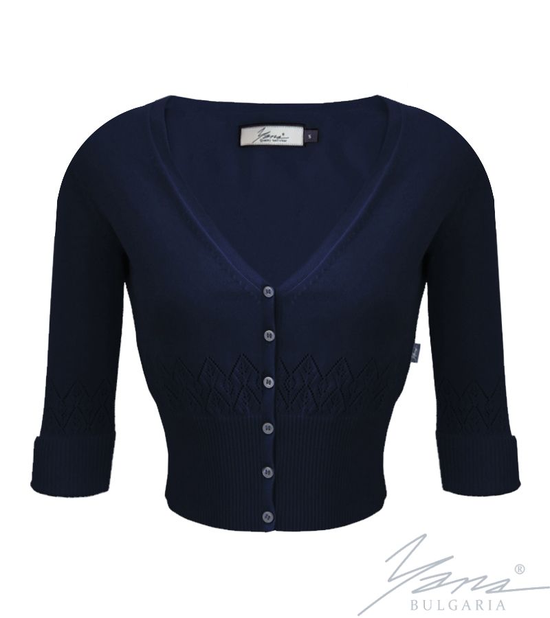 Дамска жилетка с 3/4 ръкави, тъмно синя