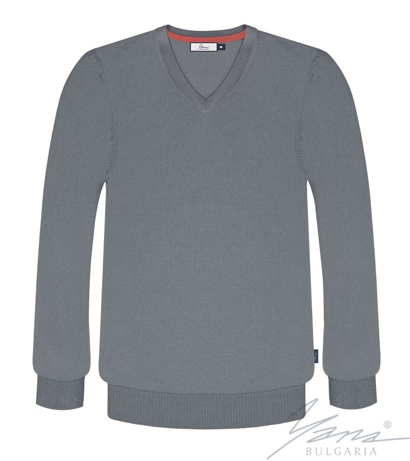 Мъжки пуловер шпиц деколте, дълъг ръкав, сив