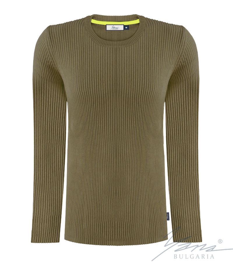 Мъжки пуловер обло деколте, дълъг ръкав, цвят каки