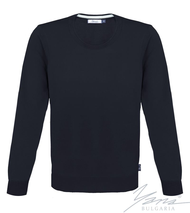 Мъжки тънък вълнен пуловер обло деколте тъмно син